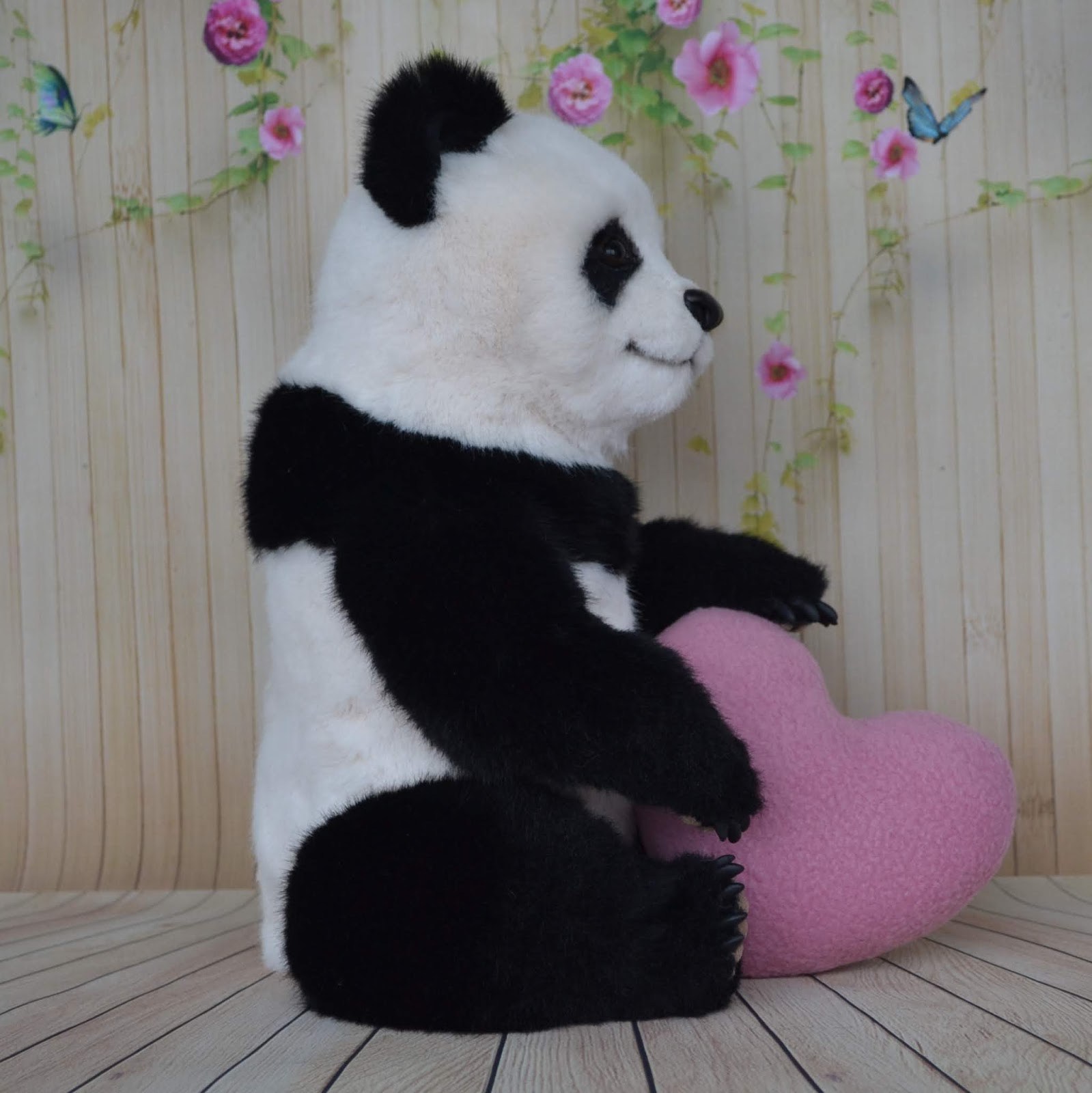 A panda kid named Valentin can live with you or become a present for someone dear to your heart;) Valentine is 31 cm, made of faux thick fur, the skeleton inside throughout the body, paws on a cotter pin. Combined stuffing, mineral granulate, belly full of rubber granulate, hollowfiber. Reinforced legs bend at the joints. Nose and claws made of polymer clay, glass eyes, paw pads made of faux suede, tinted with art paint. The heart will be with him )