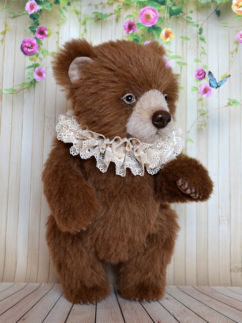 Ted unique collectible and almost alive toy created of high quality german alpaca, Faux suede heels and ears .